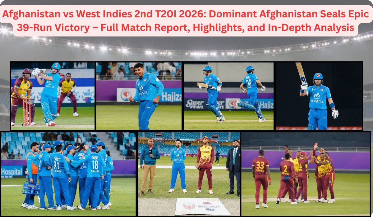 Afghanistan vs West Indies 2nd T20I 2026 was a masterclass in T20 cricket dominance. On January 21, 2026, at the iconic Dubai International Cricket Stadium, Afghanistan showcased their growing prowess by defeating West Indies by 39 runs. This victory not only gave them an unassailable 2-0 lead in the three-match series but also boosted their confidence ahead of the upcoming T20 World Cup. With Mujeeb Ur Rahman’s historic hat-trick and sparkling fifties from Darwish Rasooli and Sediqullah Atal, Afghanistan proved why they’re emerging as a force in international cricket.