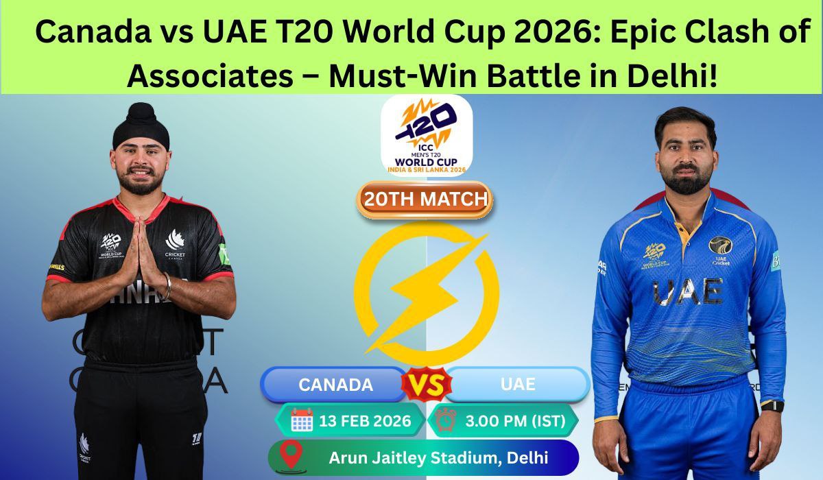 Canada vs UAE T20 World Cup 2026 promises an intense showdown as two determined associate nations battle for survival in Group D. After heartbreaking opening defeats, both Canada and the United Arab Emirates desperately need a victory to reignite their campaigns and keep Super 8 dreams alive. This February 13, 2026, afternoon clash at Delhi’s iconic Arun Jaitley Stadium could define their tournament journeys.