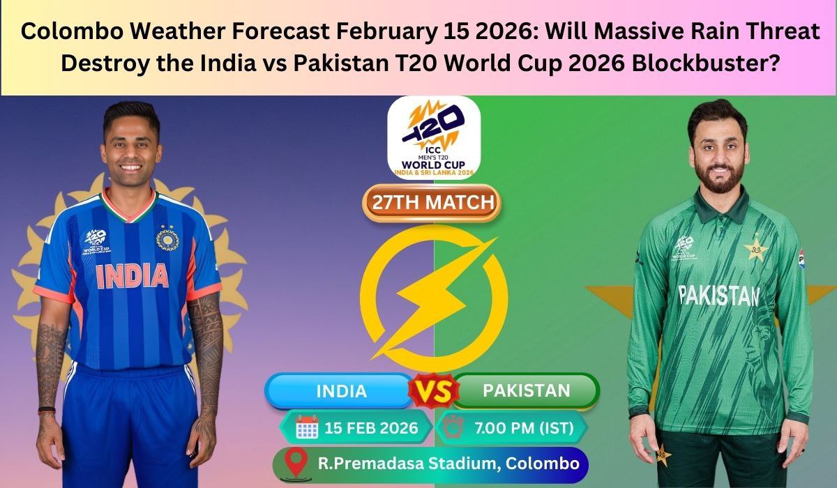 Colombo weather forecast February 15 2026 has cricket fans around the globe on edge as the ultimate showdown – India vs Pakistan in the ICC Men’s T20 World Cup 2026 – hangs in the balance at the R Premadasa Stadium.