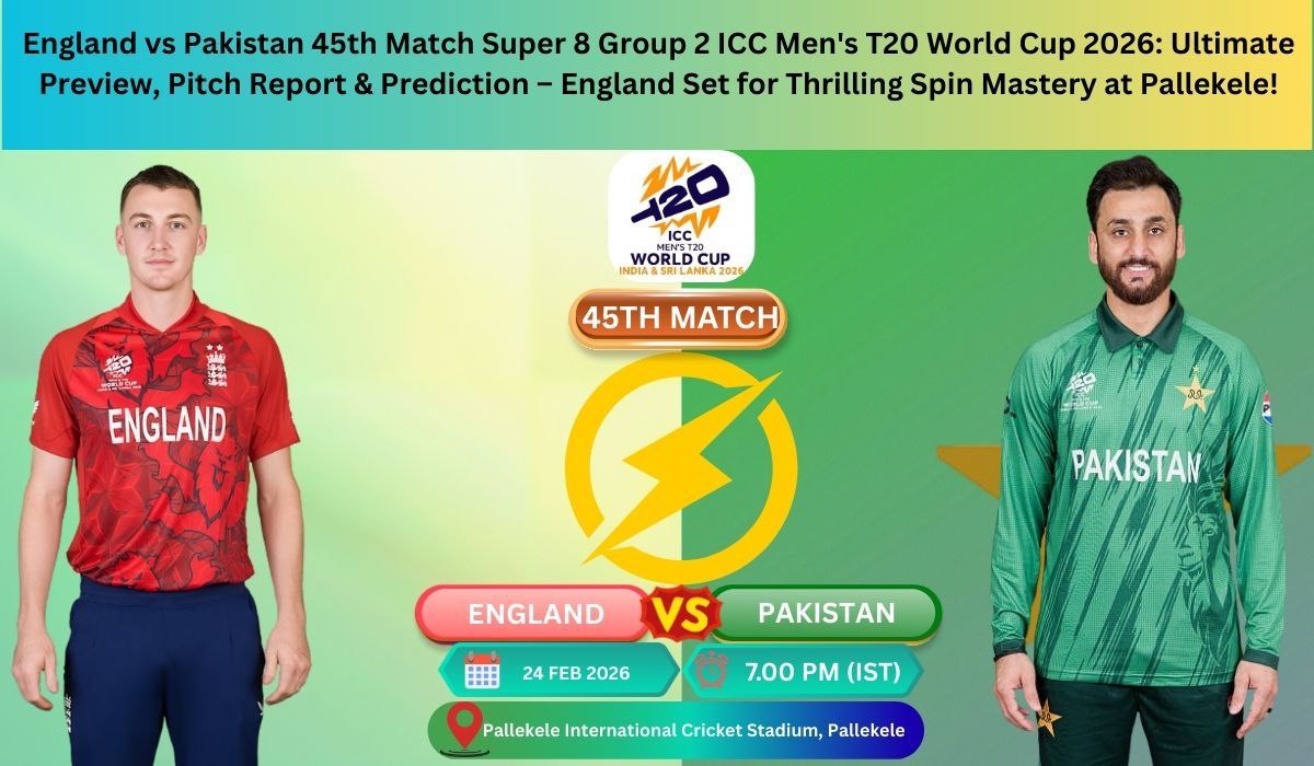 England vs Pakistan 45th Match Super 8 Group 2 ICC Men’s T20 World Cup 2026 is the blockbuster clash cricket fans have been waiting for. With England sitting pretty at the top of Group 2 after a dominant 51-run win over Sri Lanka, and Pakistan needing a victory to keep their semi-final dreams alive following a washout against New Zealand, this Tuesday night encounter at Pallekele promises fireworks.