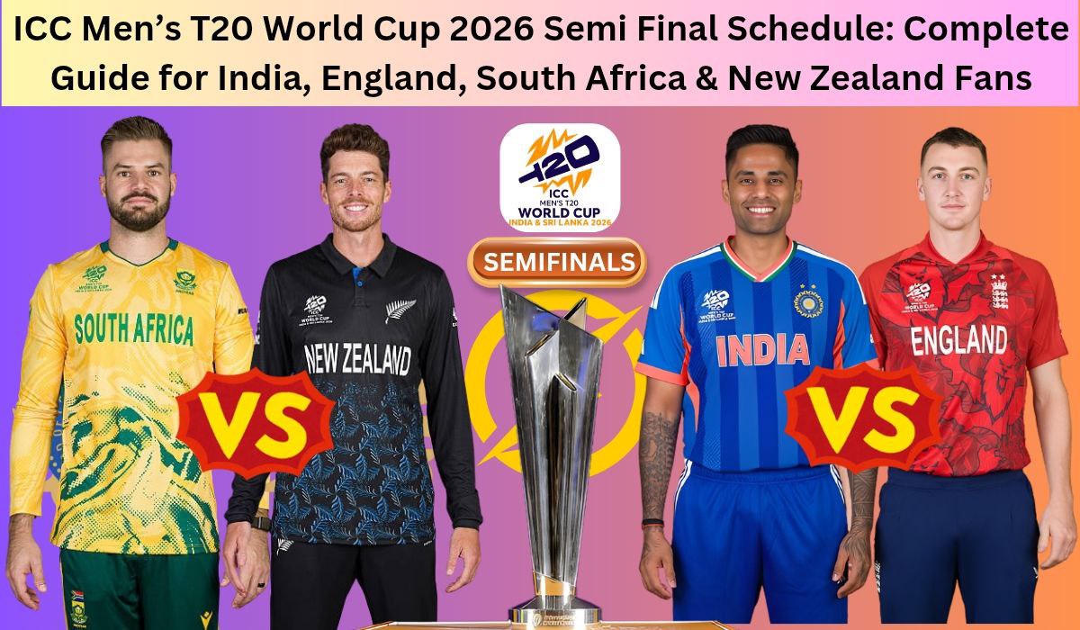The ICC Men’s T20 World Cup 2026 Semi Final Schedule has finally arrived, and cricket fans across the globe are buzzing with excitement! After weeks of thrilling group and Super 8 action, the knockout stage is set to deliver pure drama. South Africa, New Zealand, India and England have earned their places in the last four, with the semi-finals locked in following India’s dramatic five-wicket victory over West Indies on 1 March 2026, powered by Sanju Samson’s unbeaten 97.