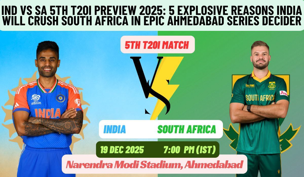 The IND vs SA 5th T20I preview is here, and cricket fans are buzzing with excitement! Tomorrow, on December 19, 2025, India takes on South Africa in the ultimate series decider at the massive Narendra Modi Stadium in Ahmedabad. With the series hanging at 2-1 in India’s favor after the rain-abandoned 4th T20I, this match promises non-stop action, big hits, and nail-biting moments.