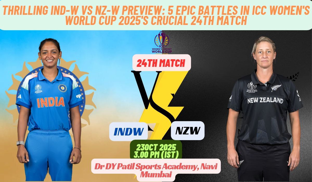 The IND-W vs NZ-W preview highlights the 24th match on October 23, 2025, at 3:00 PM IST (9:30 AM GMT). This day-night clash at Dr DY Patil Sports Academy, Navi Mumbai, is pivotal for semi-final qualification.