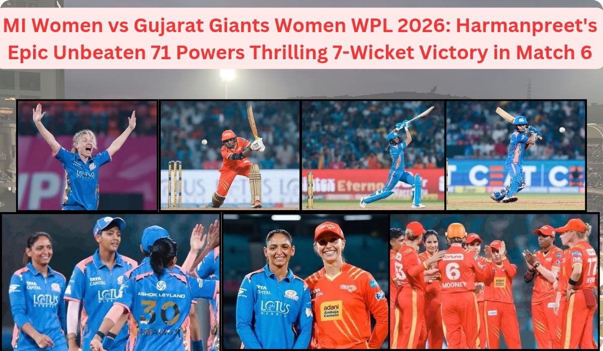 MI Women vs Gujarat Giants Women WPL 2026 turned into a spectacle of high-octane cricket at the Dr DY Patil Sports Academy in Navi Mumbai. On January 13, 2026, Mumbai Indians Women pulled off a stunning chase of 193 runs, winning by 7 wickets with 4 balls to spare. This victory not only marked the second-highest successful chase in WPL history but also extended Mumbai’s flawless head-to-head record against Gujarat Giants to an unbeatable 8-0. Captain Harmanpreet Kaur led from the front with a masterful unbeaten 71 off 43 balls, showcasing why she’s one of the most dominant forces in women’s cricket.