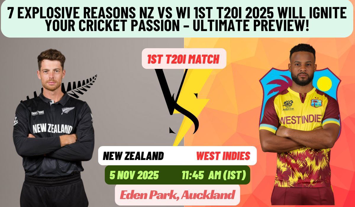 Hey cricket fans! If you’re anything like us at IPL Star – where we live and breathe fast-paced action, boundary-hitting drama, and those nail-biting finishes – then NZ vs WI 1st T20I 2025 is about to light up your world. Imagine this: The mighty Black Caps, fresh off a gritty home summer, locking horns with the Calypso Kings of West Indies, who’ve been smashing records like piñatas at a party. It’s not just a match; it’s a fireworks factory explosion waiting to happen. With Eden Park’s short boundaries begging for sixes and a dew factor that could turn the second innings into a batting paradise, this opener on November 5, 2025, screams “unmissable.”