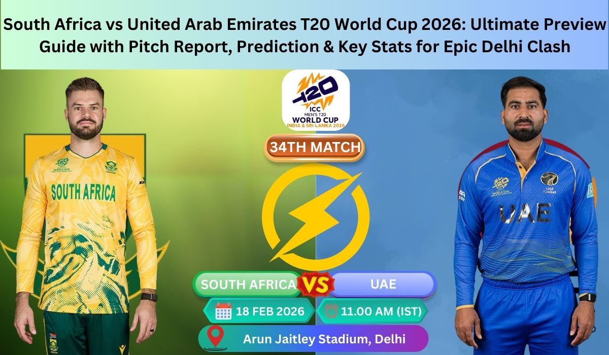 South Africa vs United Arab Emirates T20 World Cup 2026 is set to light up Arun Jaitley Stadium in Delhi on 18 February 2026. This 34th Match of Group D promises high drama even though it is a dead rubber for one side. South Africa have already stormed into the Super Eights with a perfect 3-0 record. UAE have bowed out after New Zealand beat Canada, but the Associates are hungry to end their campaign with a giant-killing scalp against the 2024 runners-up.