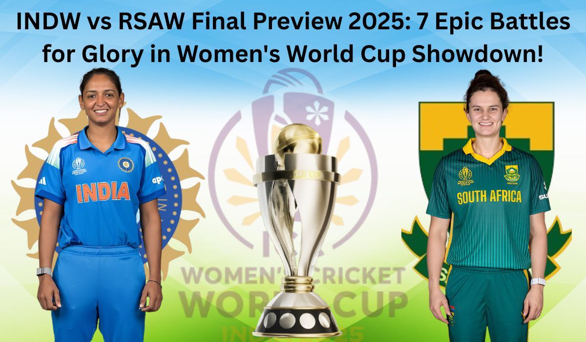 INDW vs RSAW Final Preview 2025: India vs South Africa in a historic Women’s World Cup final. Full match details, predicted XIs, DY Patil pitch report, weather forecast, head-to-head stats, and expert prediction. Who lifts the trophy on Nov 2?