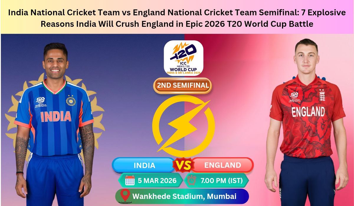 This comprehensive preview of the India National Cricket Team vs England National Cricket Team Semifinal in the ICC Men’s T20 World Cup 2026 covers match details, venue stats, pitch analysis, squads, key players, head-to-head, recent form, broadcasting, and predictions. India favorites in a high-stakes clash at Wankhede on March 5, 2026.