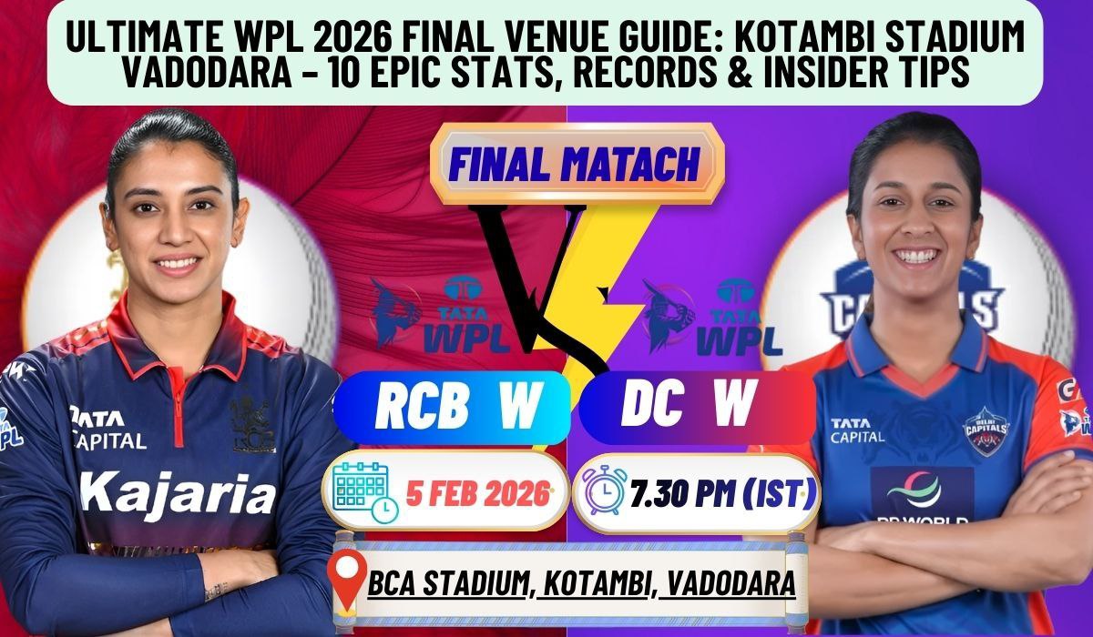 Excitement is building to a fever pitch as the Women’s Premier League (WPL) 2026 heads into its grand finale tomorrow, February 5, 2026. The WPL 2026 final venue Kotambi Stadium in Vadodara is set to host a blockbuster clash between Delhi Capitals and Royal Challengers Bengaluru. This modern gem, officially known as the Baroda Cricket Association Stadium or Vadodara International Cricket Stadium, has quickly become a fan favorite since its opening in late 2024. With a capacity of around 40,000, it’s buzzing with energy for dew-soaked night games that often turn into thrilling chases.